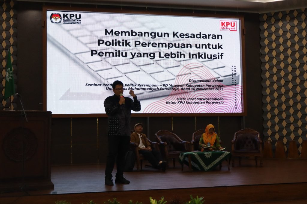 PWMJATENG.COM, Purworejo – Pimpinan Daerah ‘Aisyiyah (PDA) Purworejo menggelar Seminar Pendidikan Politik Perempuan pada Ahad (16/11) di Auditorium Kasman Singodimedjo Universitas Muhammadiyah Purworejo. Mengusung tema “Gerakan Perempuan Aisyiyah untuk Politik Keadilan dan Kemanusiaan”, kegiatan ini menjadi ruang strategis untuk meningkatkan kapasitas politik perempuan di tingkat daerah.