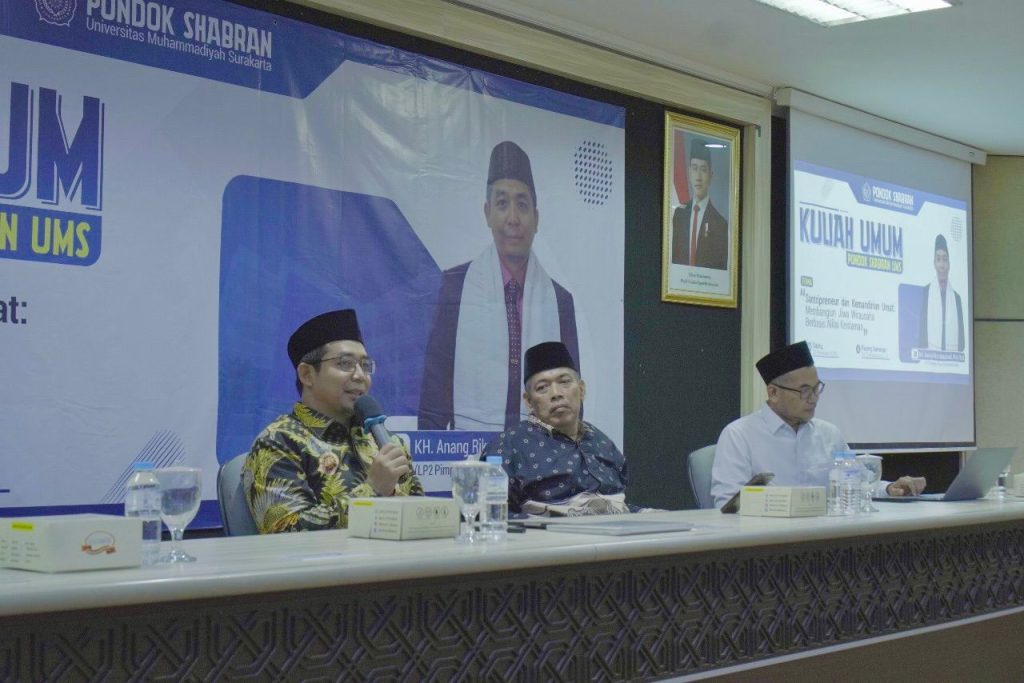PWMJATENG.COM, SURAKARTA – Pondok Hajjah Nuriyah Shabran Universitas Muhammadiyah Surakarta (UMS) menggelar Kuliah Umum bertema “Santripreneur dan Kemandirian Umat: Membangun Jiwa Wirausaha Berbasis Nilai Keislaman” pada Sabtu (29/11) di Ruang Seminar Gedung Pascasarjana Kampus 2 UMS. Kegiatan ini menjadi langkah awal Pondok Shabran UMS dalam memperkuat ekonomi pesantren melalui pengembangan jiwa wirausaha santri.