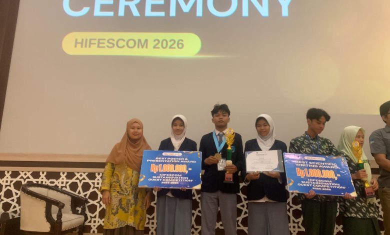 PWMJATENG.COM, YOGYAKARTA – SMA Muhammadiyah 2 Mayong (SMAMUMA) Jepara kembali mengukir tinta emas di tingkat nasional. Melalui Tim Fishtech, sekolah ini berhasil memborong Medali Emas sekaligus gelar Best Poster & Presentation Award dalam ajang HIFESCOM Sustainovation Quest Competition 2025–2026 di Universitas Ahmad Dahlan (UAD) Yogyakarta, Jumat (16/1/2026).