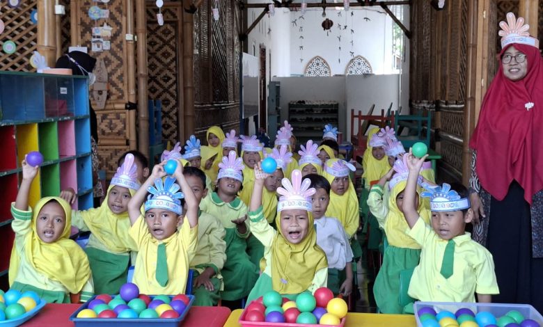 PWMJATENG.COM, Banyumas — Suasana teras sekolah TK Abas Two mendadak riuh dengan sorak sorai anak-anak pada pagi tadi. Sebanyak 34 siswa mengikuti kegiatan belajar berhitung yang dikemas secara kreatif melalui gim estafet bola, sebuah metode pembelajaran bermakna yang menggabungkan aspek kognitif dan ketangkasan fisik.
