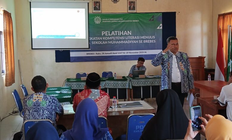 PWMJATENG.COM, Brebes, 19 November 2025 — Majelis Dikdasmen & PNF Pimpinan Daerah Muhammadiyah (PDM) Brebes menggelar kegiatan Peningkatan Kompetensi Literasi Menulis bagi para kepala sekolah Muhammadiyah se-Kabupaten Brebes. Program yang terlaksana di Aula PDM Brebes ini menghadirkan Hendra Apriyadi, S.Pd., M.Pd., Dosen Pendidikan Bahasa dan Sastra Indonesia FKIP Universitas Muhammadiyah Prof. Dr. Hamka (UHAMKA), sebagai narasumber utama.