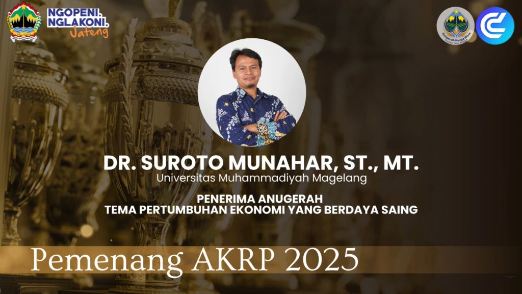PWMJATENG.COM, Semarang – Dosen Program Studi D3 Mesin Otomotif Fakultas Teknik (FT) Universitas Muhammadiyah Magelang (UNIMMA), Dr. Suroto Munahar, ST., MT., meraih penghargaan bergengsi dalam ajang Anugerah Karya Riset Pembangunan (AKRP) Jawa Tengah 2025. Seremoni penghargaan digelar pada Kamis (6/11) di Gedung Gradhika Bhakti Praja, Semarang.