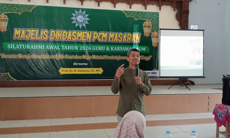 PWMJATENG.COM, SRAGEN – Majelis Pendidikan Dasar dan Menengah (Dikdasmen) Pimpinan Cabang Muhammadiyah (PCM) Masaran menggelar silaturahmi guru dan karyawan Amal Usaha Muhammadiyah (AUM) pada Senin (12/1/2026). Kegiatan ini menjadi momentum strategis untuk memperkuat solidaritas sekaligus meningkatkan kualitas pendidikan di lingkungan Muhammadiyah di awal tahun.