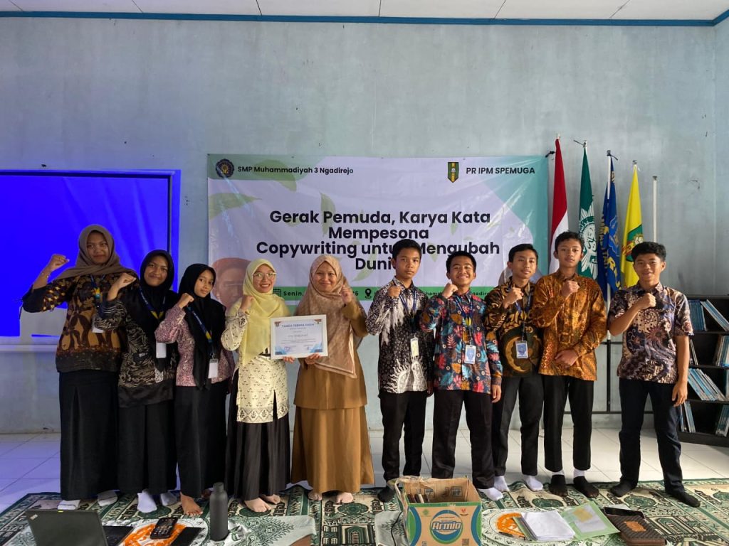 PWMJATENG.COM, Temanggung – Dalam momentum Hari Sumpah Pemuda dan Bulan Bahasa, Pimpinan Ranting Ikatan Pelajar Muhammadiyah (IPM) SMP Muhammadiyah 3 Ngadirejo menggelar sarasehan bertajuk “Gerak Pemuda, Karya Kata Mempesona: Copywriting Mengubah Dunia”, pada Senin, 27 Oktober 2025. Acara ini menghadirkan Eva Widyasari dari Bidang Pusat Informasi dan Teknologi (Pusintek) Pimpinan Daerah Nasyiatul Aisyiyah (PDNA) Temanggung sebagai pembicara utama.