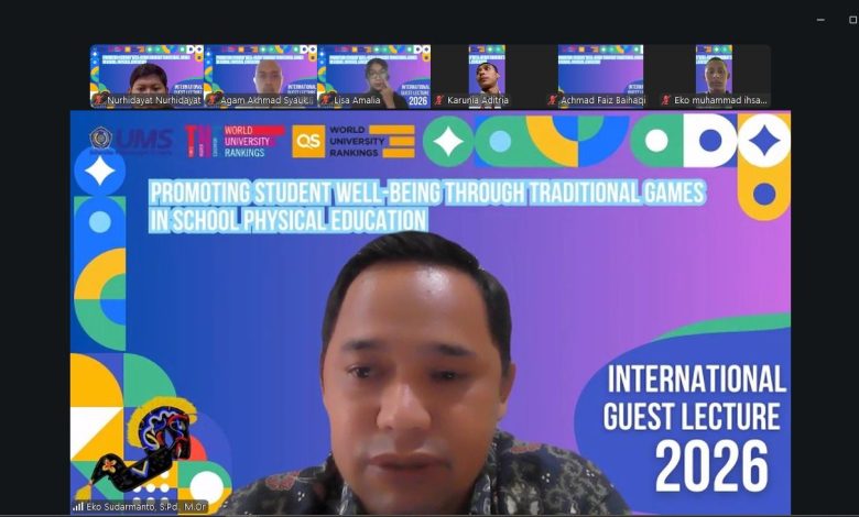 PWMJATENG.COM, Surakarta — Program Studi Pendidikan Jasmani Fakultas Keguruan dan Ilmu Pendidikan (FKIP) Universitas Muhammadiyah Surakarta (UMS) sukses menyelenggarakan International Guest Lecture bertema “Promoting Student Well-Being Through Traditional Games in School Physical Education”, Senin (6/1).