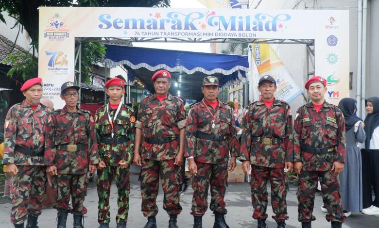 PWMJATENG.COM, COLOMADU – Barisan loreng Komando Kesiapsiagaan Angkatan Muda Muhammadiyah (KOKAM PCM Colomadu) tampil gagah dalam mengawal jalannya Pengajian Akbar Milad ke-74 MIM Digdaya Bolon pada Minggu (18/1). Personel KOKAM menjadi garda terdepan dalam memastikan ketertiban di tengah lautan ribuan jamaah yang memadati kompleks Masjid At Taqwa Bolon.