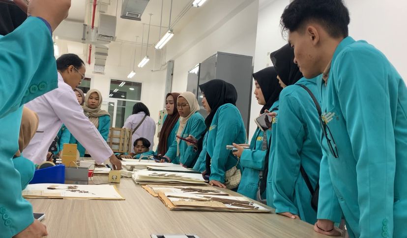 Kunjungan yang dilaksanakan pada Jumat (14/11) tersebut menghadirkan penjelasan langsung dari peneliti BRIN mengenai proses pembuatan herbarium. Mahasiswa memperoleh pemahaman tentang teknik penyimpanan hingga pemanfaatan koleksi sebagai bahan penelitian dan pembelajaran.