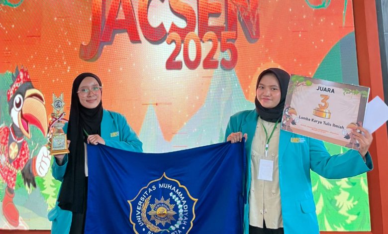PWMJATENG.COM, Surakarta – Tiga mahasiswa Program Studi Akuntansi Universitas Muhammadiyah Surakarta (UMS) sukses mencatatkan prestasi membanggakan di ajang Jambi Accounting Competition Seminar Nasional (JACSEN) 2025. Tim mereka, yang menamakan diri Femvisory, berhasil meraih juara 3 dalam Lomba Karya Tulis Ilmiah Nasional yang diselenggarakan di Universitas Jambi pada 3–5 Mei 2025.