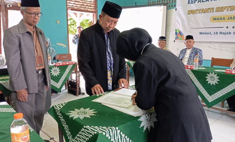 PWMJATENG.COM, Kendal — Estafet kepemimpinan di MA Muhammadiyah 1 Weleri resmi bergulir. Wakil Sekretaris Majelis Dikdasmen dan PNF PWM Jawa Tengah, Soewondo, melantik Dwiyanti Septiningsih Winarni sebagai Kepala Madrasah periode 2025–2029, menggantikan Romanto, Rabu (7/1).
