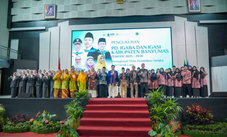 PWMJATENG.COM, BANYUMAS — Universitas Muhammadiyah Purwokerto (UMP) menjadi tuan rumah pelantikan Pimpinan Daerah Ikatan Guru Aisyiyah Bustanul Atfal (PD IGABA) dan Pimpinan Daerah Ikatan Guru Aisyiyah Seluruh Indonesia (PD IGASI) Kabupaten Banyumas periode 2025–2030. Kegiatan berlangsung di Auditorium Ukhuwah Islamiyah UMP dan dihadiri Wakil Menteri Pendidikan Dasar dan Menengah RI, Dr. Fajar Rizal Ul Haq, MA, Rektor UMP Prof. Dr. Jebul Suroso, serta sejumlah pejabat daerah. Pelantikan dilanjutkan dengan workshop peningkatan mutu pembelajaran PAUD melalui seni gerak, lagu tematik, motorik, serta permainan aktif dan kreatif.