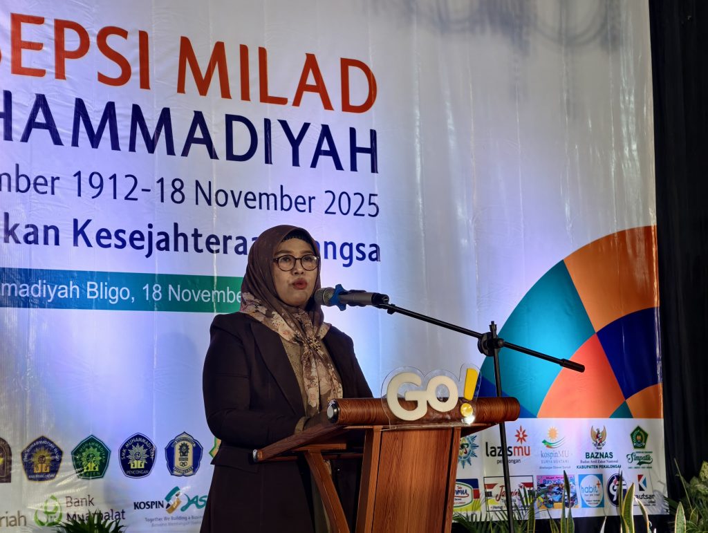 Bupati Pekalongan Hj. Fadia Arafiq, S.E., M.M., melalui sambutan yang dibacakan Dra. Hj. Masrorah, M.Si., menyampaikan penghargaan Pemerintah Daerah terhadap kontribusi Muhammadiyah.