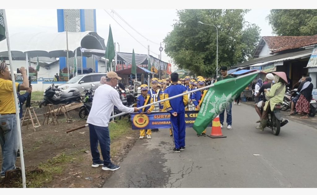 Kemeriahan acara semakin lengkap dengan penampilan drumband dari SD Muhammadiyah Wonosari yang menarik perhatian dan menambah semangat peserta jalan sehat.