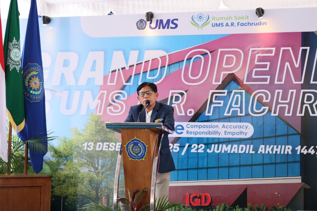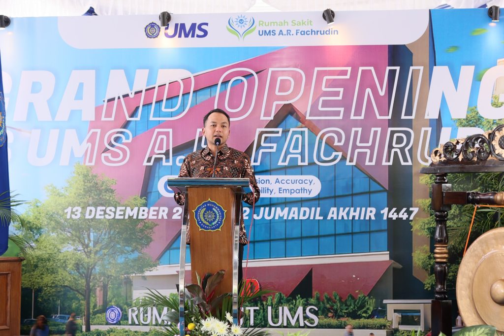 Badan Pembina Harian (BPH) RS UMS AR Fachruddin, Prof. Harun, S.H., M.H., menyampaikan bahwa rumah sakit ini merupakan amal usaha UMS yang berfungsi sebagai pusat pelayanan kesehatan, pendidikan, penelitian, dan pengabdian kepada masyarakat berbasis nilai-nilai Islam.