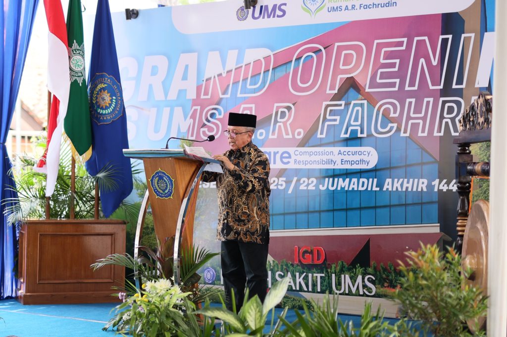 Ketua Umum Pimpinan Pusat Muhammadiyah, Prof. Dr. K.H. Haedar Nashir, M.Si., mengapresiasi kehadiran RS UMS AR Fachruddin sebagai bagian dari tradisi panjang pelayanan kesehatan Muhammadiyah.