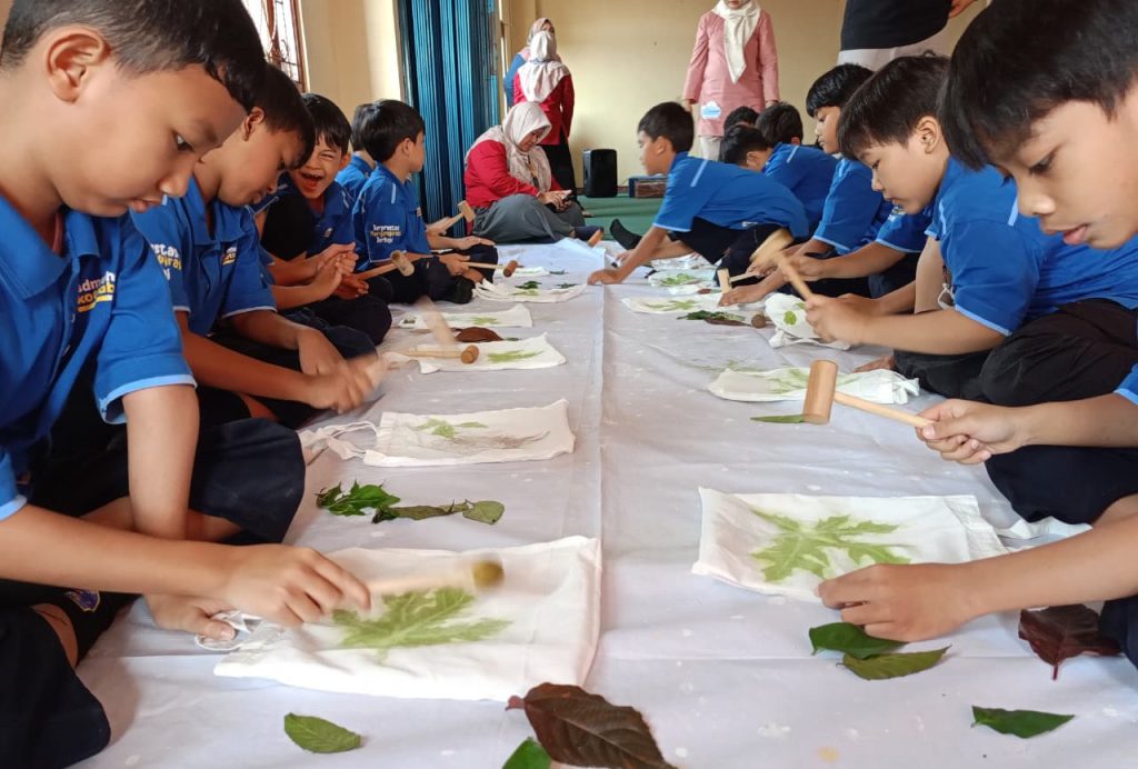 Salah satu murid, Alfarezy Zhafran Nugroho, mengaku takjub saat melihat pigmen warna daun berpindah ke tasnya. “Aku baru tau ternyata daun bisa menjadi pewarna yang bagus,” ucapnya penuh antusias.