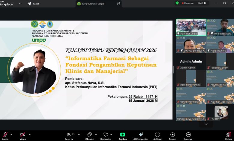 PWMJATENG.COM, PEKALONGAN – Dunia kefarmasian kini tidak lagi hanya berkutat pada peracikan obat, melainkan telah bertransformasi ke arah digital. Menyadari hal tersebut, Program Studi Sarjana Farmasi dan Pendidikan Profesi Apoteker (PSPPA) Universitas Muhammadiyah Pekajangan Pekalongan (UMPP) menyelenggarakan Kuliah Tamu Kefarmasian 2026 pada Kamis, 15 Januari 2026.