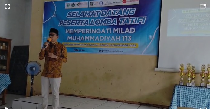 PWMJATENG.COM, Jepara — Lomba Tatifi SMP Muhammadiyah Jepara berlangsung meriah dan penuh kekhidmatan pada Sabtu, 15 November 2025, sebagai bagian dari rangkaian Semarak Milad Muhammadiyah ke-113. Puluhan peserta dari SD/MI se-Kabupaten Jepara berkumpul di halaman sekolah untuk berkompetisi dalam tiga cabang lomba: Tahfidz, Tartil, dan Kaligrafi.