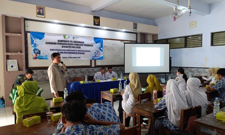 PWMJATENG.COM, Jepara, 19 November 2025 — Upaya meningkatkan kesadaran remaja terhadap bahaya Diabetes Melitus (DM) terus digalakkan oleh Dinas Kesehatan Kabupaten Jepara. Salah satu langkahnya yaitu Kampanye Gerakan Pengendalian Prioritas Diabetes Melitus yang digelar di SMA Muhammadiyah 2 Mayong pada Rabu (19/11), bekerja sama dengan Majelis Kesehatan Pimpinan Daerah Aisyiyah (PDA) Jepara.