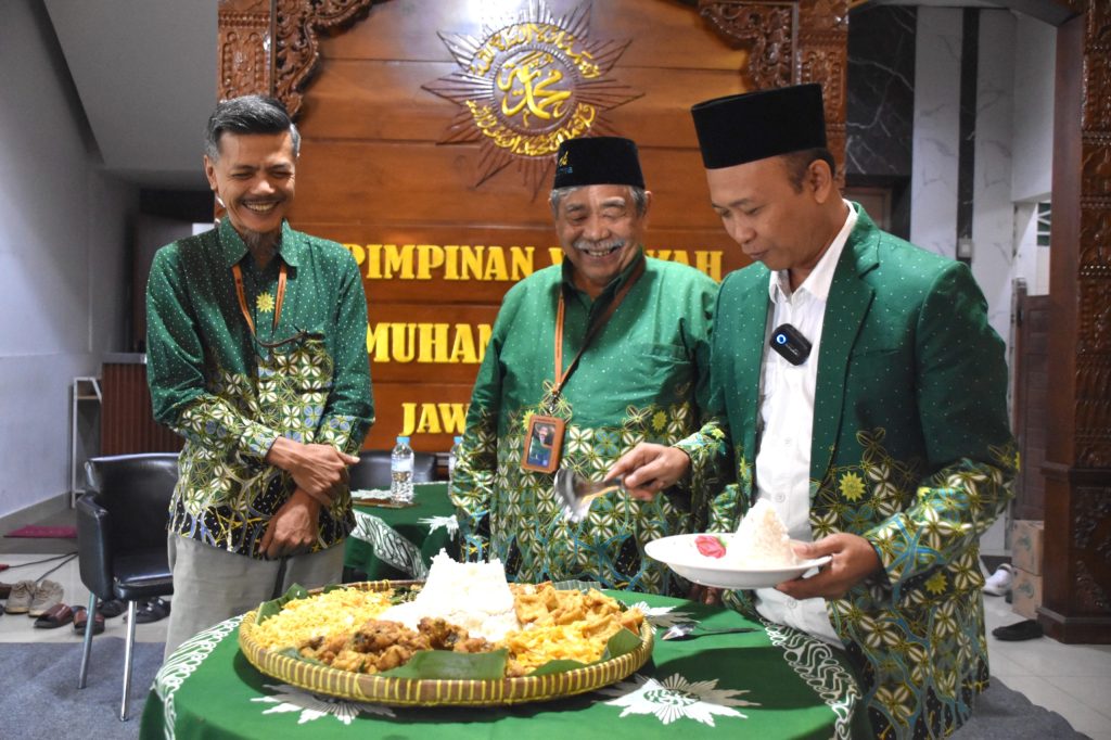 Acara tasyakuran kemudian ditutup dengan pemotongan tumpeng sebagai simbol rasa syukur dan harapan akan keberkahan serta kemajuan Muhammadiyah di masa mendatang. Suasana hangat dan penuh kekeluargaan menandai akhir kegiatan yang berlangsung sederhana namun sarat makna tersebut.