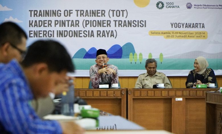 Gerakan ini memasuki fase penting melalui Training of Trainer (TOT) Kader Pintar – Pionir Transisi Energi Indonesia Raya, yang digelar di Balai PMD Kalasan, Yogyakarta, pada 11–13 November 2025. Kegiatan diselenggarakan oleh Program 1000 Cahaya bekerja sama dengan Majelis Dikdasmen dan PNF PP Muhammadiyah, Majelis Lingkungan Hidup PP Muhammadiyah, dan Forum Guru Muhammadiyah.